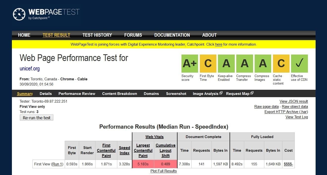 - Step 1: Analyze your overall performance. On the above screenshot, you can see that unicef.org received mostly A’s and a couple of C’s. Still, there are a few metrics that need attention (see: red highlights).