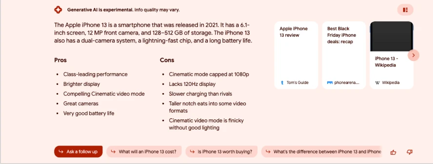 - AI Overviews likes to generate comparisons between products & create Pros/Cons lists, even if no comparisons have been made.