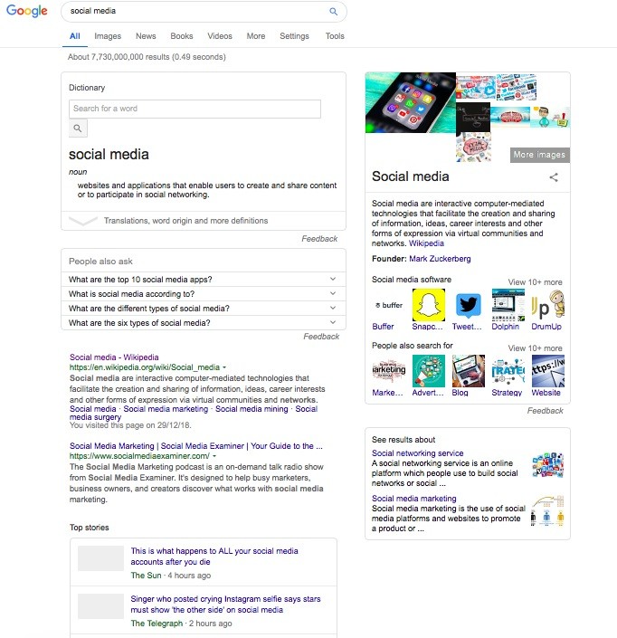 As you can see from the image below, we’ve checked the search volume of social media, and it’s historically very high in comparison with average keywords. This means that its competition is high too, which makes it challenging to rank new websites to rank for this search term.