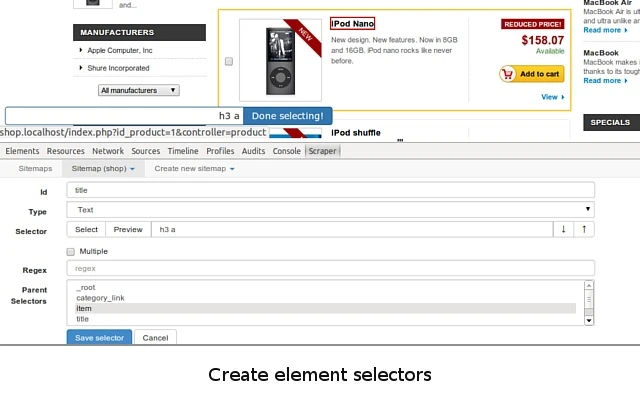 Advertised as the web’s number one data extraction tool, Web Scraper features a simple point-and-click interface and modular selector system. Dynamic websites are no problem, as the technology can navigate categories, subcategories, pagination, and product pages without issue.