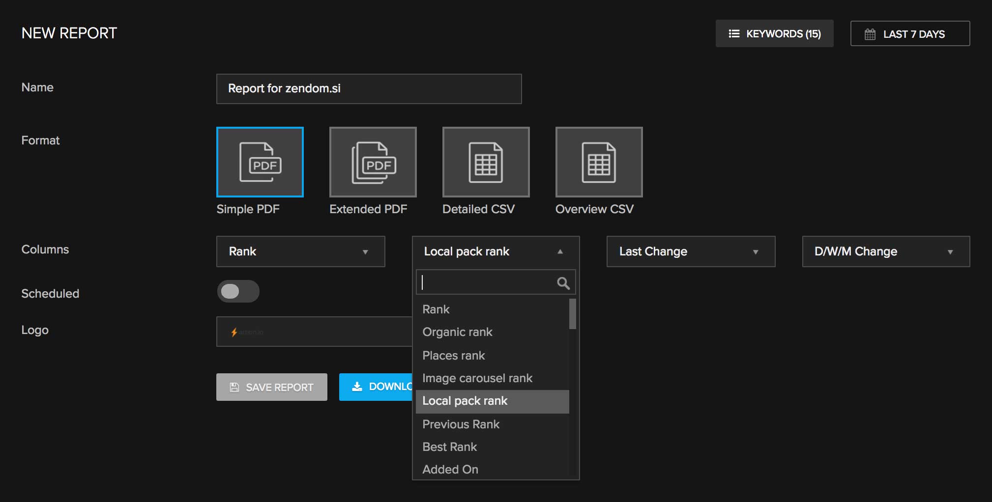 You can also use those columns to customize the reports and include organic or local rankings on them accordingly.