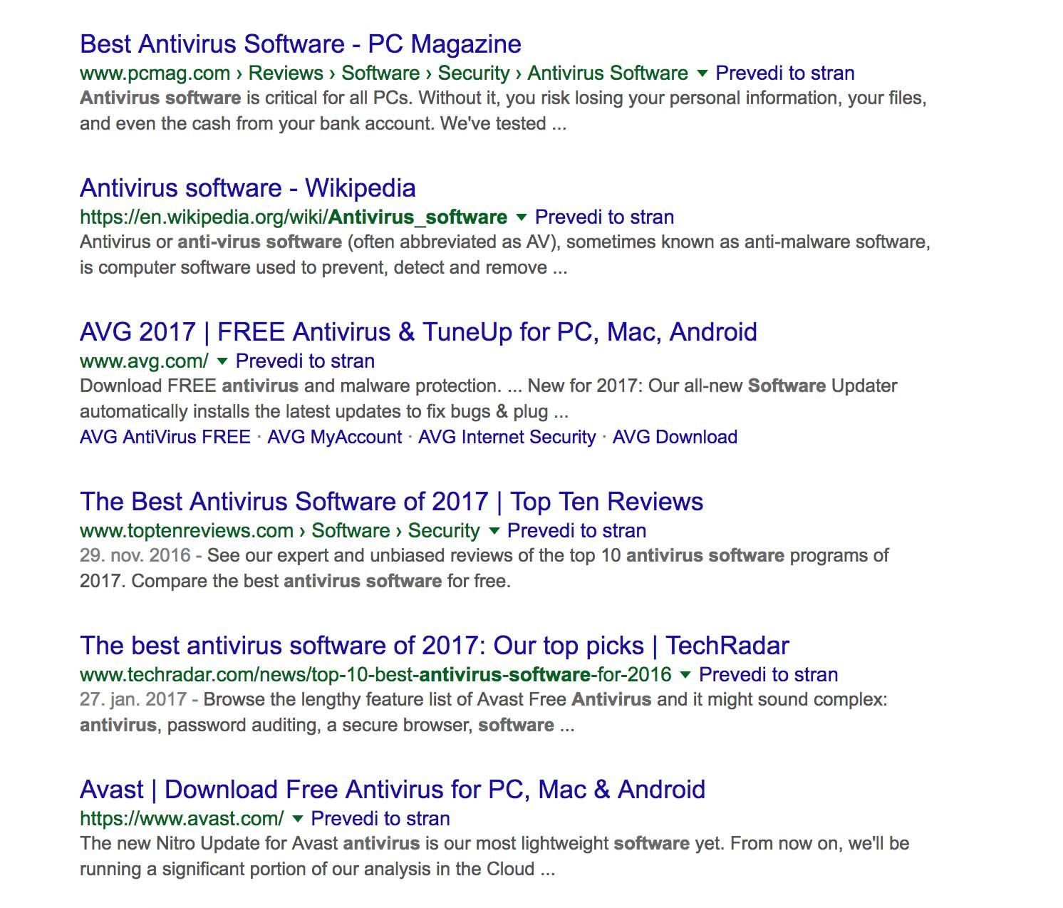 This is a regular and pretty boring search result page.