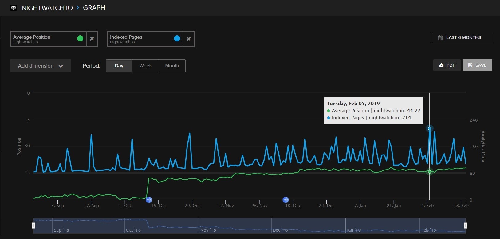 How to: On your Nightwatch graph, select “Indexed pages” under Website.